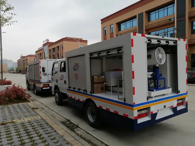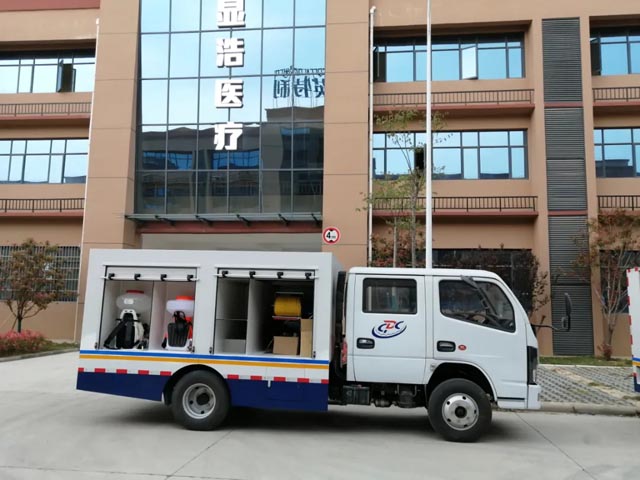 用于消杀室外环境的细菌,病毒,和蚊蝇等媒介昆虫。车内配置超低容量喷雾机、常量喷雾机等设备??上敬砻婊海?00㎡可连续反复充装;杀虫处理面积:2500—100000㎡。