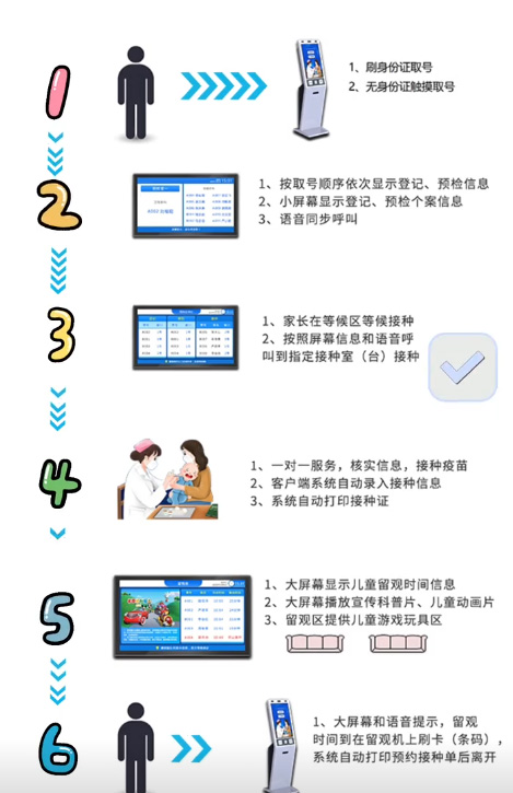 预防接种的叫号机的操作流程六步骤与排队叫号系统图