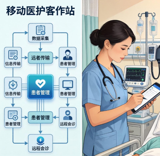 护士工作站是提供给护士使用的,可以满足护士日常的所有工作需求,护士工作站部署在移动数据终端上?;な靠梢酝ü贫俅不だ硐低掣僖街龅娜芷冢谀壳耙皆盒畔⑾低彻δ芊段?,HIS系统只跟踪到医嘱转抄这一步,即把医嘱分解成为可操作的执行项目并且在这一步就对该条医嘱执行收费,不再跟踪医嘱实际执行过程。而移动临床护理系统将现有护士工作站延伸至病人床旁,执行者通过扫描患者腕带条码、药品包装容器条码完成医嘱执行确认和收费,并准确记录实际执行人、执行时间。查咨账护士用PDA在病人床旁完成对病人各项护理信息的采集和记录。数据自动存体到数据转移到PDA上,可显项的记录后.自动生成势图,医生下达医后,行数据读取、查询、查对与执行.