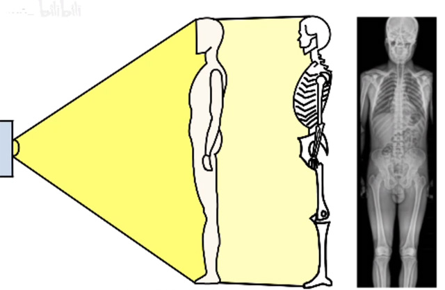 这个图可以直观感受DR的成像原理,其实我们可以将其看作是一个压面包的过程将一个面包压瘪以后再进行观察的过程。