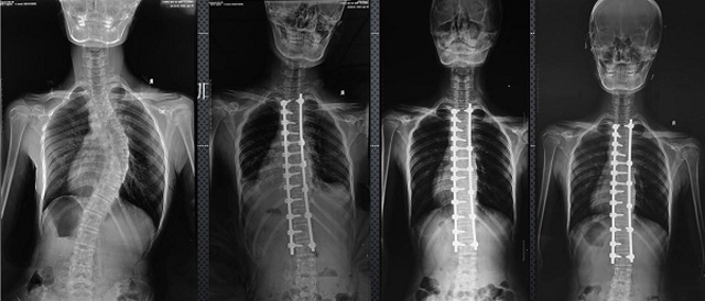 (7)全身拼接功能对有较大尺寸全脊柱拼接图接桂成金下股分成几次拍摄,再经过秋件开在骨科开展的全脊柱畸形矫治工作中,虽然CT. MRI也能获取全脊柱影像,接图像,以便于长度、角度、力线等测量和察脊柱在重力情况下但不能进行立位检查,无法观全景观察。全身拼接功能是高等级DR摄取患者立位全下的功能状态图像,因此采用动态医院特别看重的动态DR功能之一。注:图中Cobb脊柱正侧位图像是首选的检查方法角度的大小是反映侧弯严重程度的一个标准。