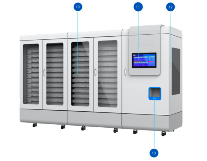 针剂发药机的智能系统对每一种药品都有专属的存放槽,保证了药品的存放资料和数量。因为它不像原来传统药房需要消耗大量的人力来分类摆放药品,温度湿度都调节好,大大的减轻了药房存放药品,定期盘点的工作量。与传统人工调剂相比,智能针剂发药机可以让药剂师从繁重的调配工作中解放出来。降低分拣的劳动强度,特别是拿药高峰期,可以减少病人家属的拿要时间。进而使药房与患者之间的摩擦得到降低。尤其是节假日值班人员较少的情况下,优势更为明显。