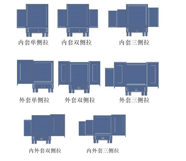 目前常用的主要有内套拉箱、外套拉箱,和内外套拉箱形式。