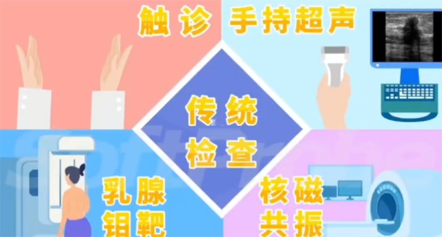 触诊检查对小病灶的敏感度低,半年前的检查,现在已经是癌症晚期。超声检查无创伤无辐射,但是检查效果对超声医生的水平依赖度比较高,因为每个医生的检查操作手法不一样差异比较大。但是有经验的超声医生我们国家严重缺乏,缺口达到了10几万。漏医漏诊多发病灶,小病灶发现不了。钼靶目前在国外比较流行,中国女性一般为致密性乳腺。腺体脂肪的比例超过了50%钼靶的穿透效果差,容易漏诊早期病灶。钼靶将整个乳房压扁透视,检查过程不太舒适,会比较痛苦。特别是乳房比较小的检查效果差,它还有放射性不能频繁使用,特别是孕期跟哺乳期不用做检查。磁共振检查检查差不多要半小时时间比较长,成本比较高体内的造影剂还有残留的风险。只有在高度怀疑乳腺癌,其他检查都没办法确诊情况下才会使用磁共振。