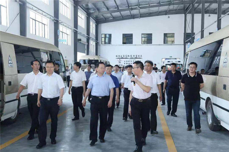 荆门市委书记张爱国带队参观了显浩医疗的企业实物展厅,考察了医疗车生产现场,听取了公司经理余清海介绍了企业基本情况、发展历程、主要核心技术和产品以及未来发展规划等情况。