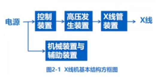 影像技术检查、设备管理。医用X线机分为诊断用X线机和治疗用X线机两大类。诊断用X线机的基本结构由X线发生装置和外围装置两大部分组成。X线机的基本结构是,电源-控制装置-机械装置与辅助装置-高压发生装置-X线管装置-X射线。主要人是产生X线,控制X线的穿透能力。辐射强度和曝光时间,根据临床检查需要配装的各种机械装置。