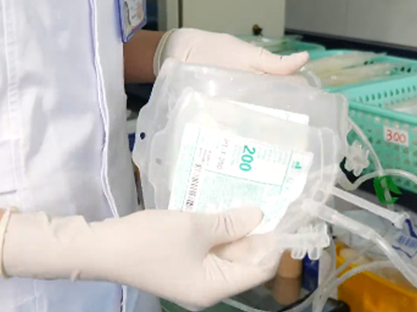 献血时,中心血站采用的血袋为五联袋:采血袋,主要用于适用于血液及血液成分的采集、贮存、处理、转移、分离和输注。第一个袋子采集血液; 第二个袋子收集滤除白细胞后的悬浮红细胞去白悬红; 第三个袋子主要收集分离后的血浆;第四个袋子为红细胞保存液;第五个袋子用于制备冷沉淀。