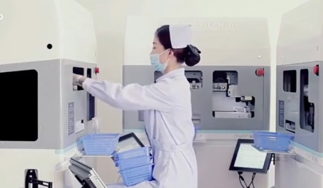 这个是国产自主研发的能够完成全套血液样本采集,有国家药品监督管理局三类医疗器械产品注册证。填补了国内外的空白,自动供管、供针、消毒穿刺这些功能全部都不在话下。血管识别率在实际使用中达到97%以上。这样大家都不用排那么久的队了。采血效率大大的提高。好处非常多,先说说效率以前的人工采血人一多,医护人员就忙不过来,患者就得一直等。现在智能采血设备能一直工作。一小时可以处理很多样本。用了智能采血管理系统后,患者高峰期平均等待时间从一小时降到30分钟左右。工作人员没小时采血量从800管提升到1800管,差距非常大。
