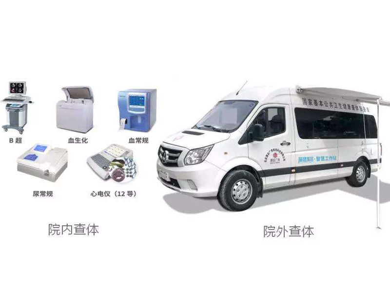 查体车也可以称为医疗车,体检车是满足常规体检、应急医疗救援等功能的专用车辆,由客车底盘改装而成,功能却很齐全。主要用于医疗行业,车上配装车载DR、心电超声检查、电测听室、先进医疗仪器设备,可以做胸透,心电,B超,生化检验等测试,全自动生化分析仪。血常规,尿常规检查。