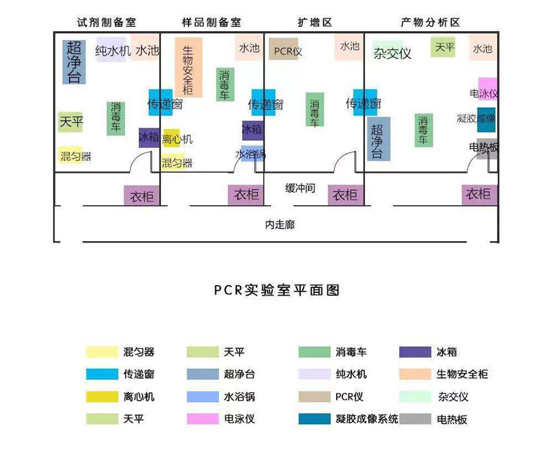 移动PCR实验室中配备了基本实验设备和条件符合实验室标准改装,实验室里面负压状态,单向风流,避免交叉感染。配备生物安全柜的强毒作业间,缓冲室和更衣室??梢园踩闶笛槿嗽钡募觳狻?掌讼低?,可以达到99%以上。保证内部的空气清洁度。冷暖空调系统保证实验室温度处在恒温状态。实验室里面的空气需要经过灭菌高效过滤才能排出室外。所有污物都必须经过高压灭菌锅灭菌后方可带出室外?;繁2晃廴就饨?。