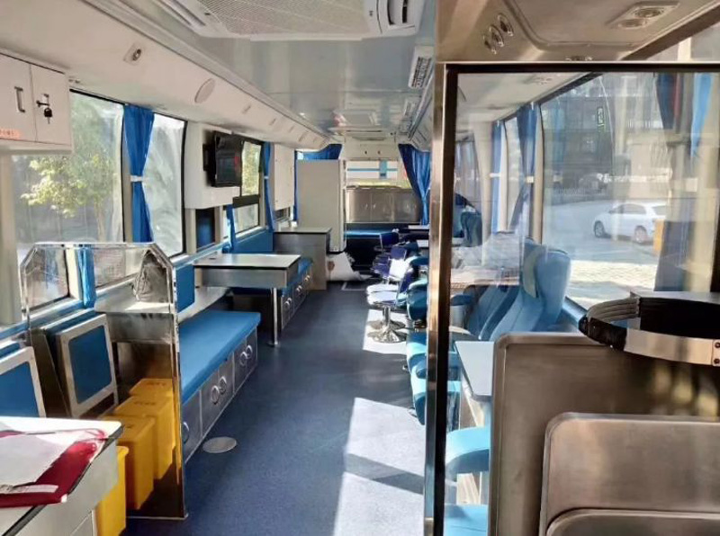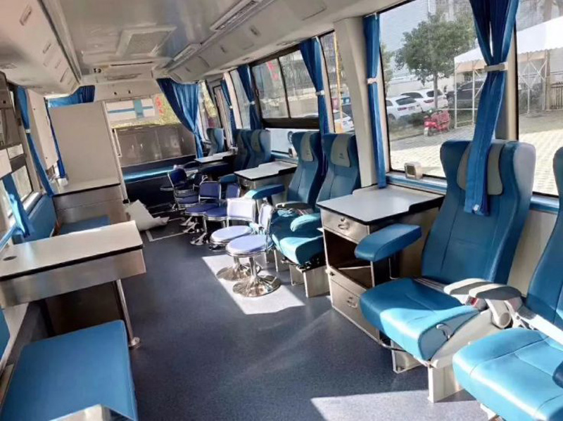采血车使用前要进行严格消毒杀菌环境严格按照无菌操作,扶手,桌椅,物品表面,操作台,采血秤车擦拭。里没有细菌污染才能进行采血。采血椅舒适,功能划分高效有序,搭载完善的医疗卫生设备,区域设置合理设备设施个性化定制更实用。提升硬件采血设施,提升采血服务水平。采血车整车长11米,宽2.5米、高3.5米,设有登记接待、咨询、初检、采血、休息等功能区,内部宽敞,设计新颖、内饰漂亮。高性能采血座椅,环境舒适,光线明亮、采血车设备齐全,采血秤、血压计、储血冰箱、热合机、新型空气消毒机、等配套设施齐全。