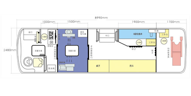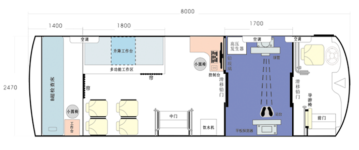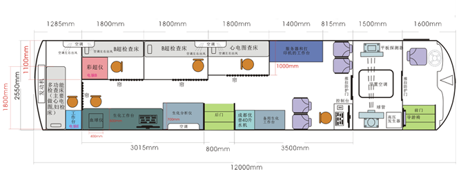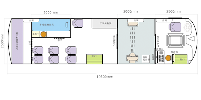 车载DR体检车功能却很齐全,车上配装X光机、心电超声检查、电测听室、全自动生化分析仪以及检查床、冰柜、空调和紫外线消毒灯等先进医疗仪器设备。
